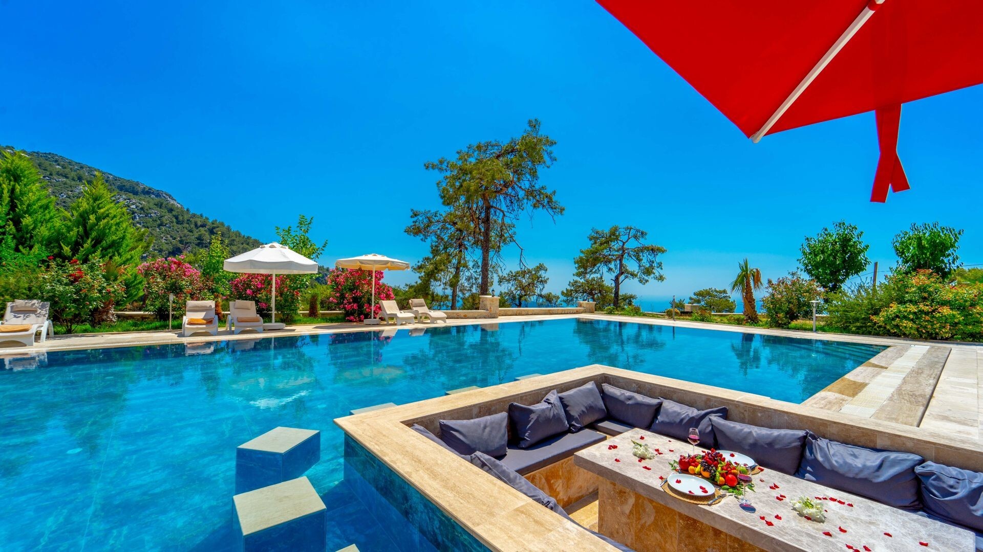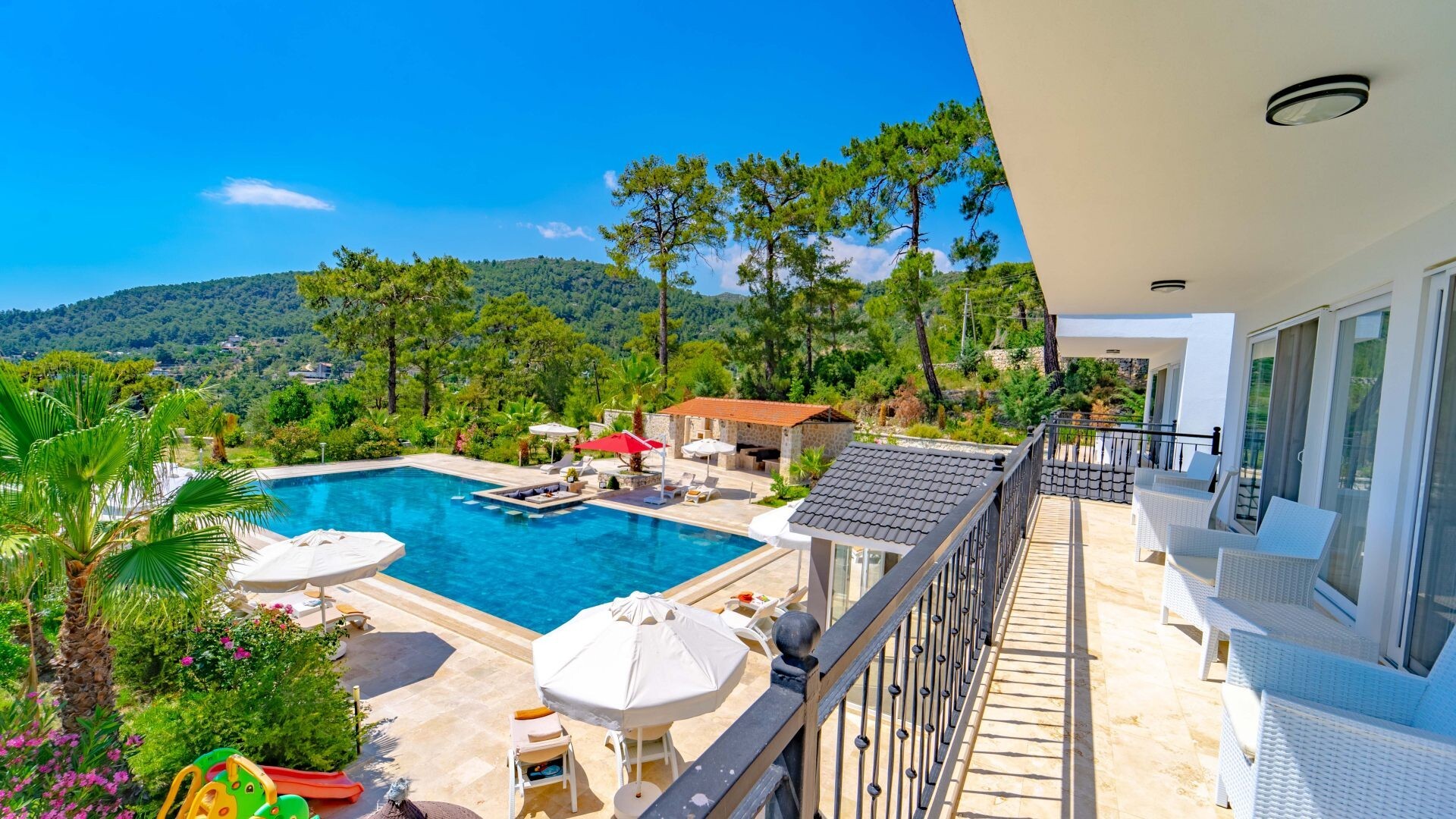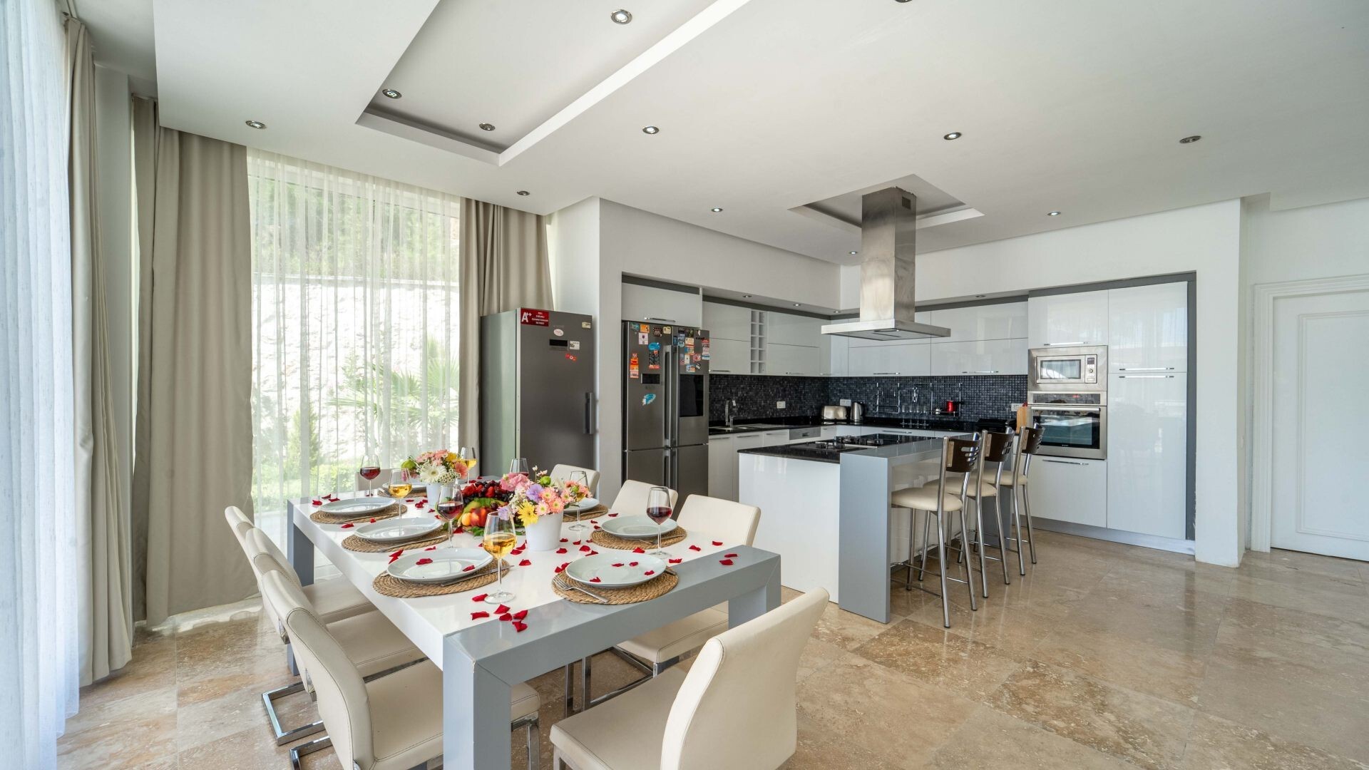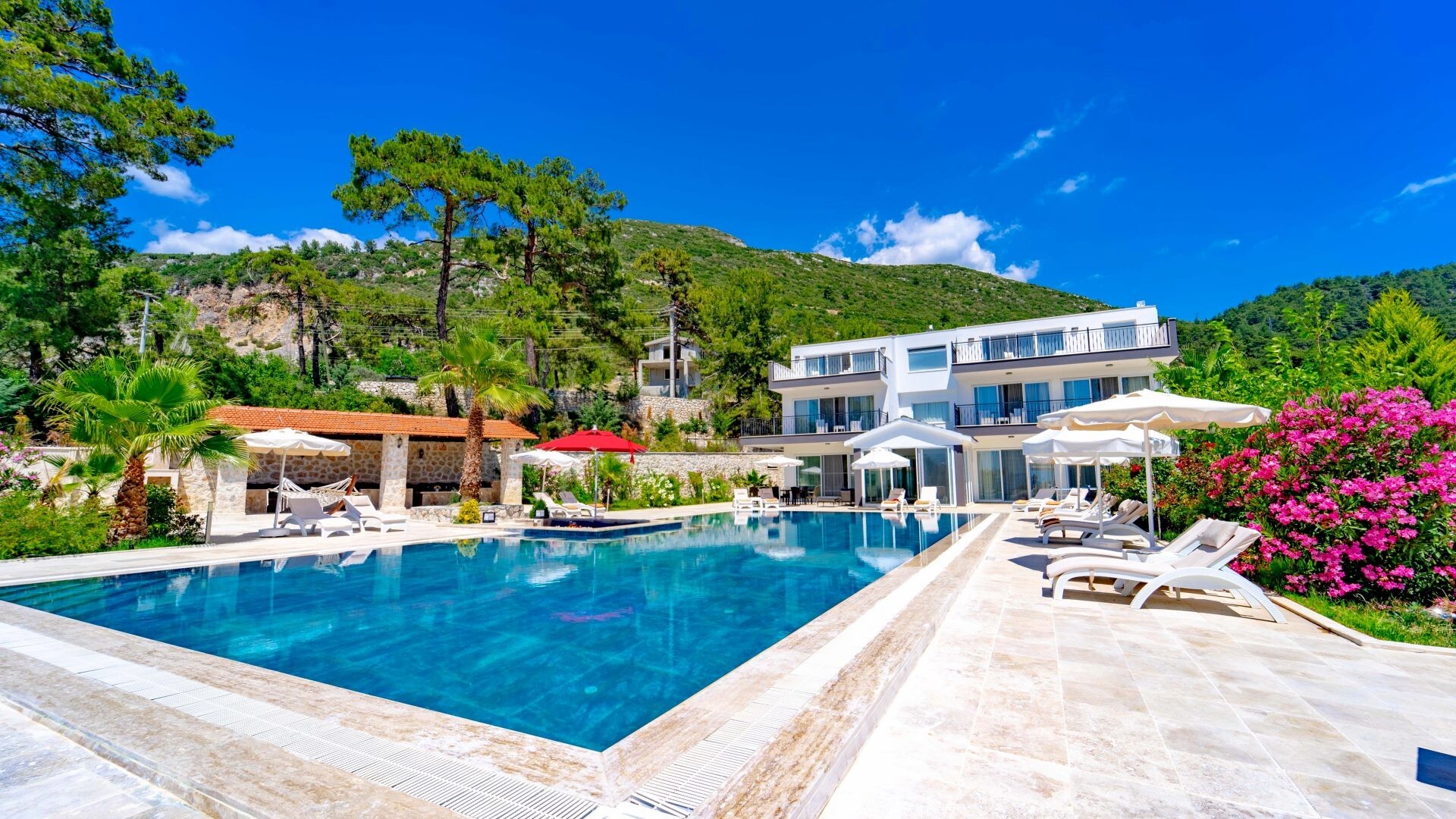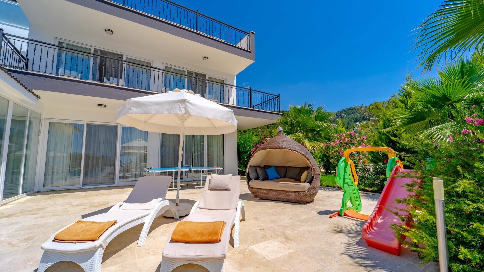 Этот стильный и замечательный объект, расположенный в городе Калкан, ждет вас, чтобы подарить вам и вашим близким незабываемые впечатления от отдыха.