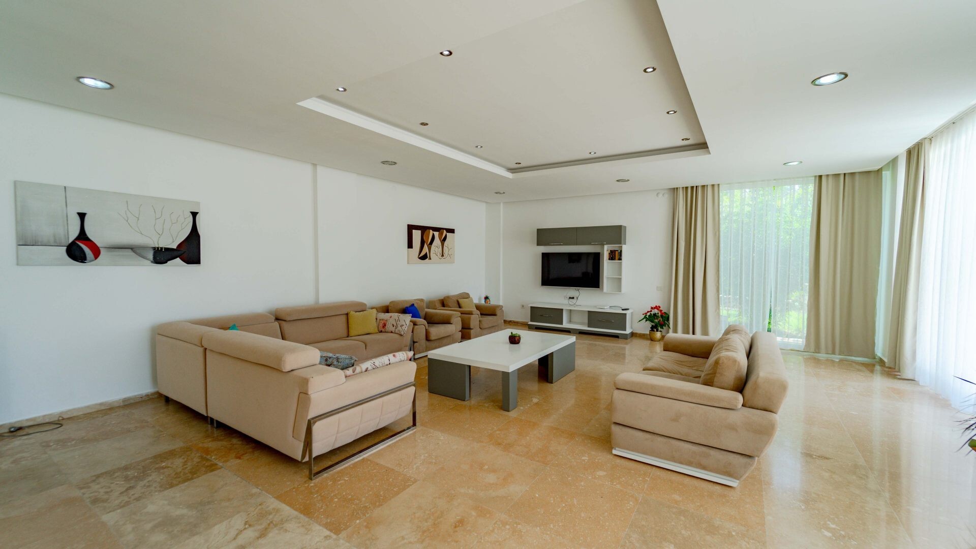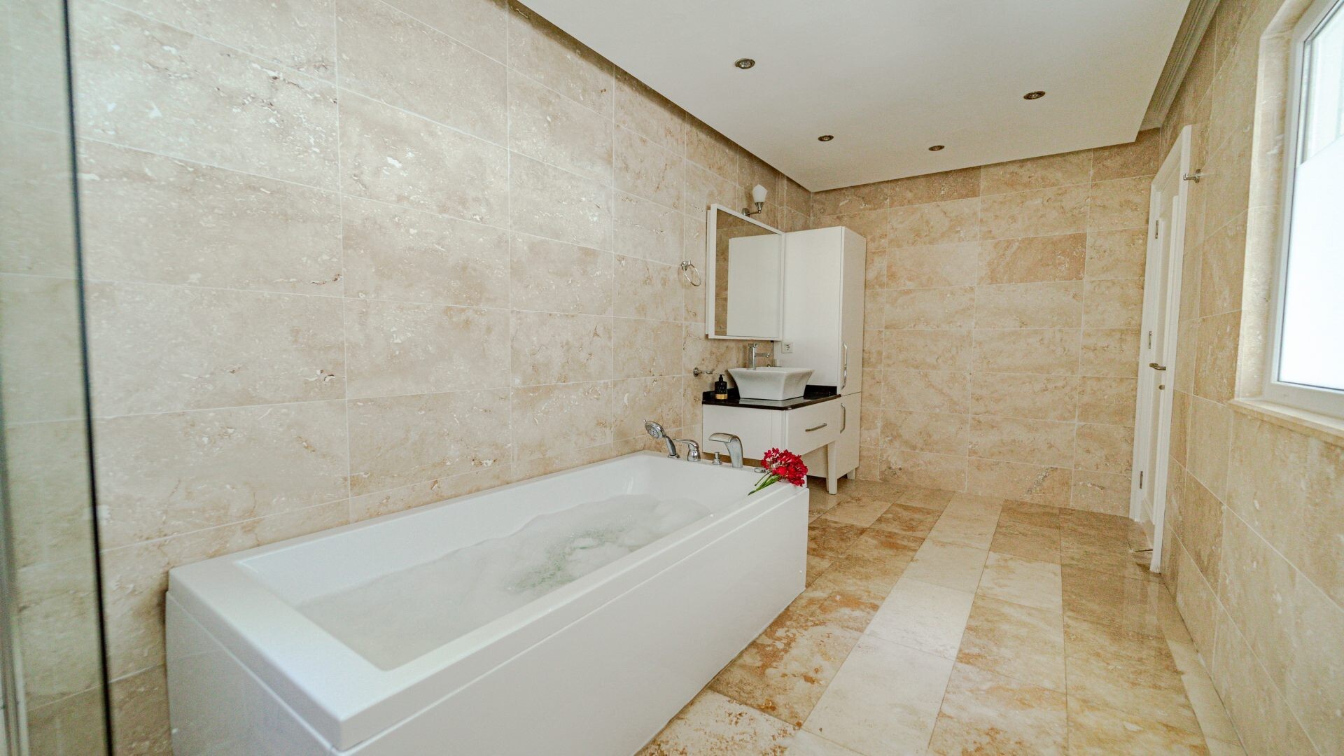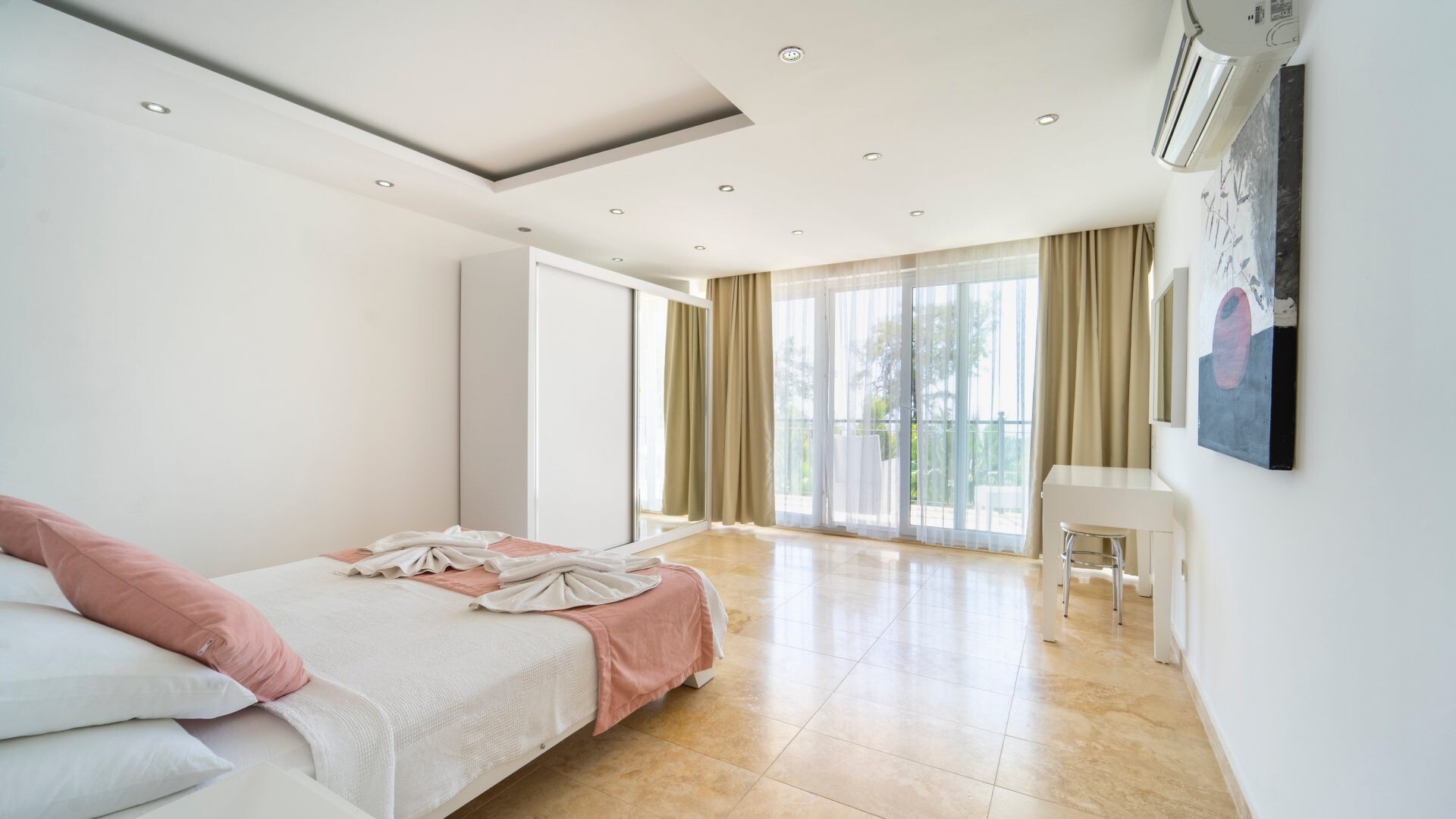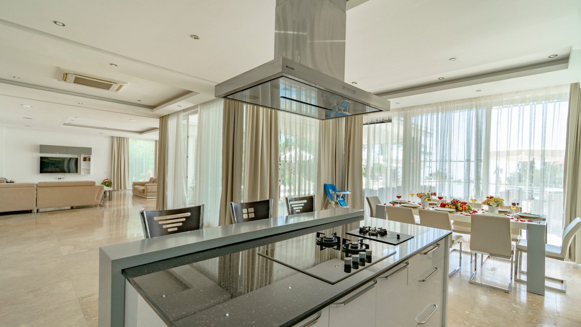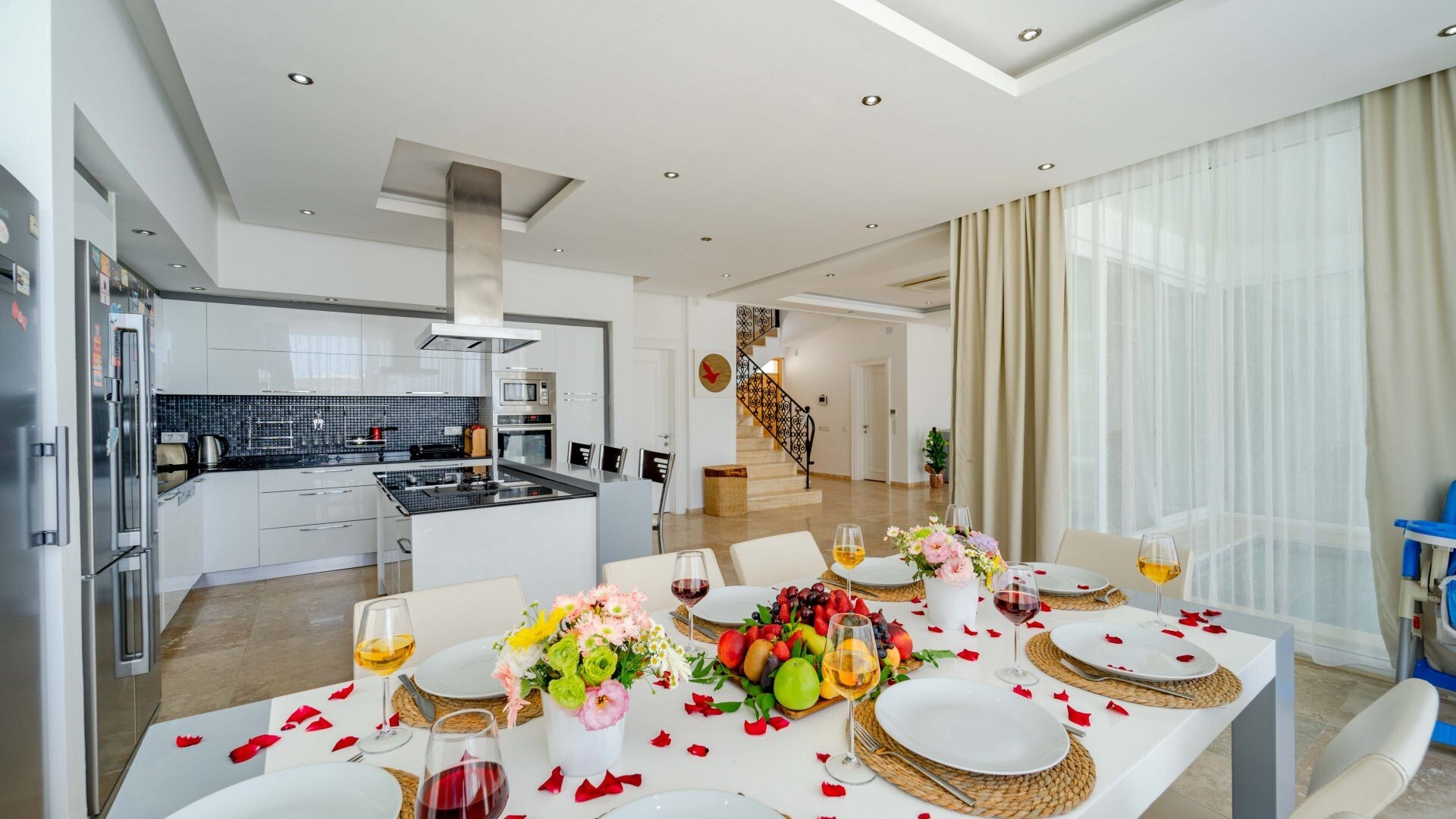 В объекте могут разместиться до 12 человек. В наличии 5 спальни и 5 ванные комнаты, имеется достаточное пространство для гостей, позволяя вам чувствовать себя как дома. Кроме того, современное и стильное оформление сделает ваш отдых комфортным.