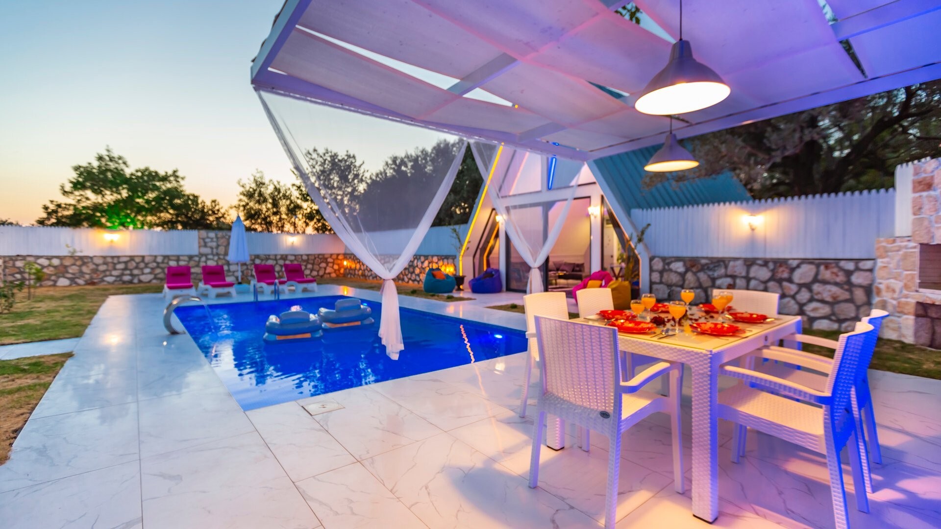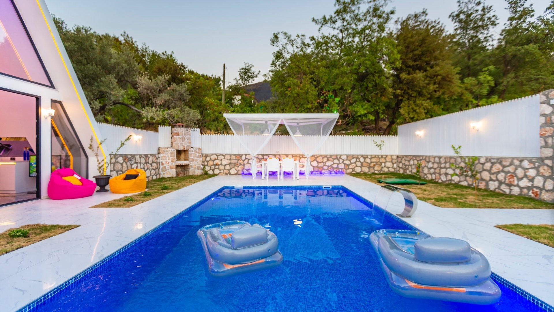 Этот стильный и замечательный объект, расположенный в городе Калкан, ждет вас, чтобы подарить вам и вашим близким незабываемые впечатления от отдыха.
