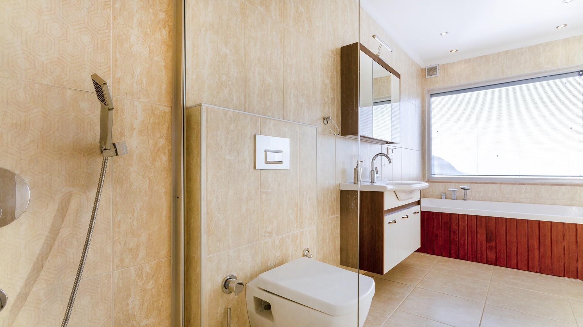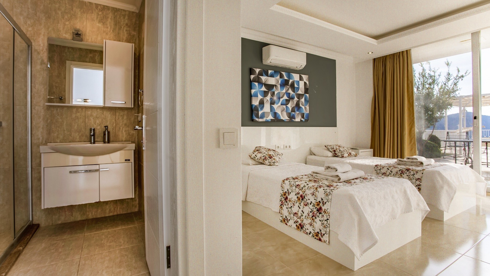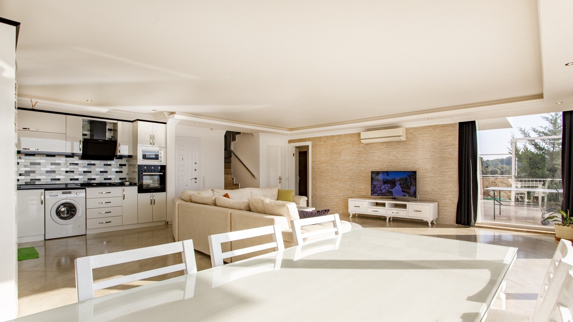 В объекте могут разместиться до 6 человек. В наличии 3 спальни и 3 ванные комнаты, имеется достаточное пространство для гостей, позволяя вам чувствовать себя как дома. Кроме того, современное и стильное оформление сделает ваш отдых комфортным.