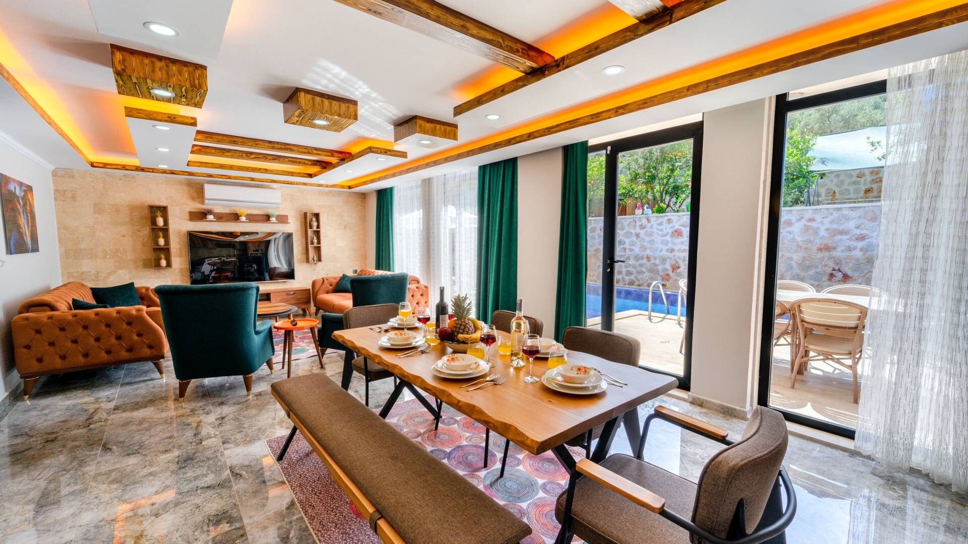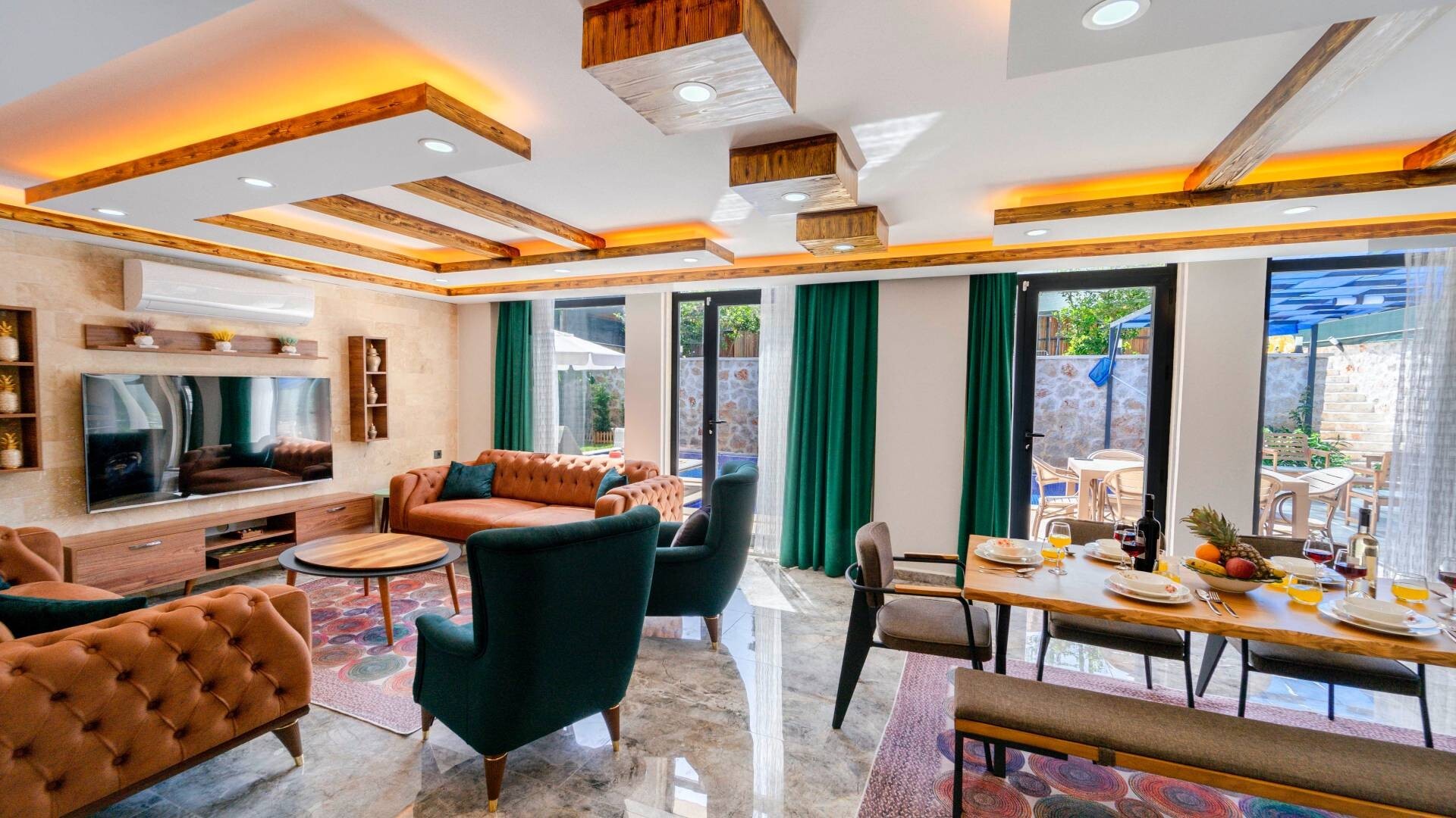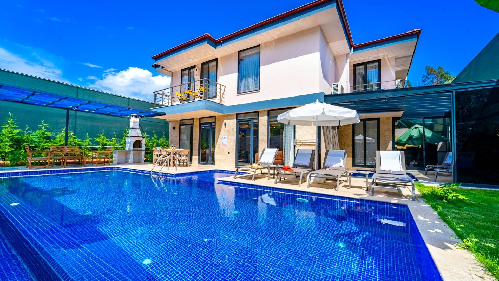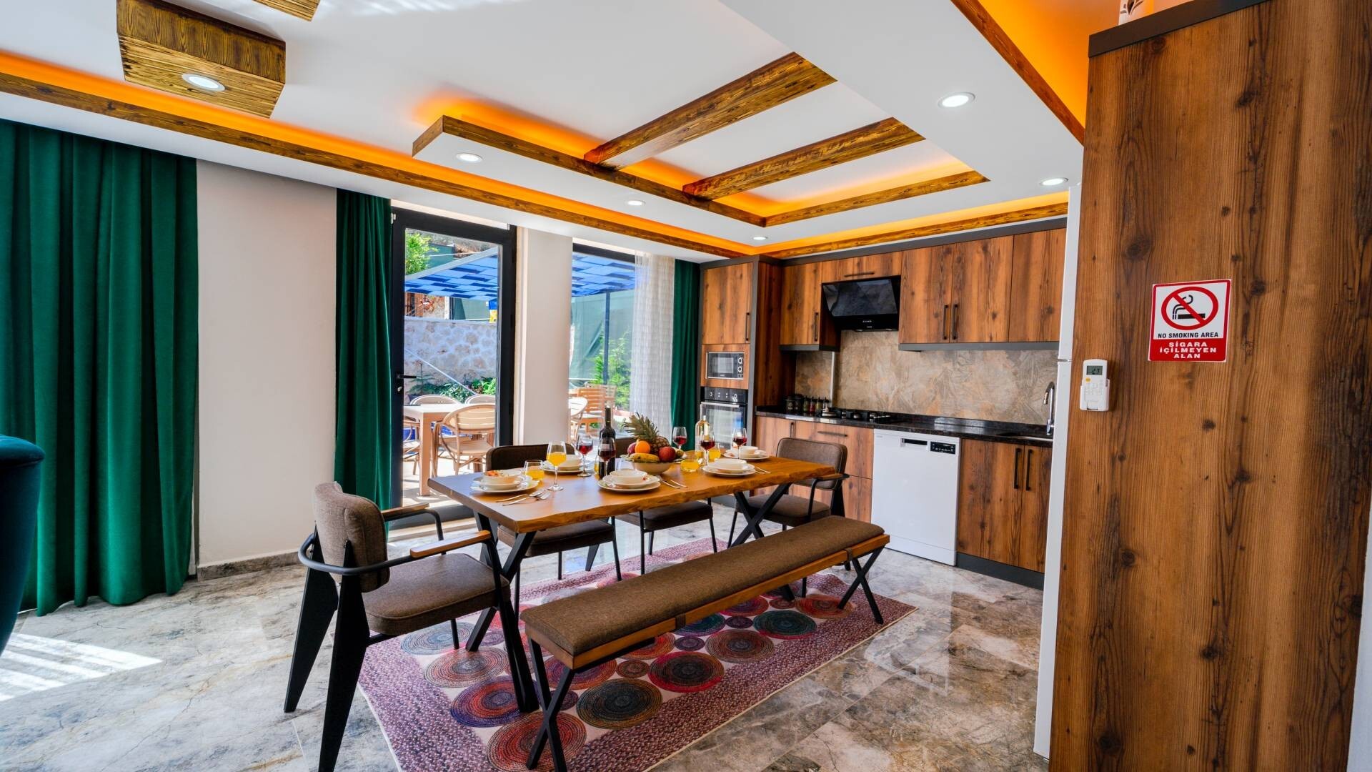 Этот стильный и замечательный объект, расположенный в городе Калкан, ждет вас, чтобы подарить вам и вашим близким незабываемые впечатления от отдыха.