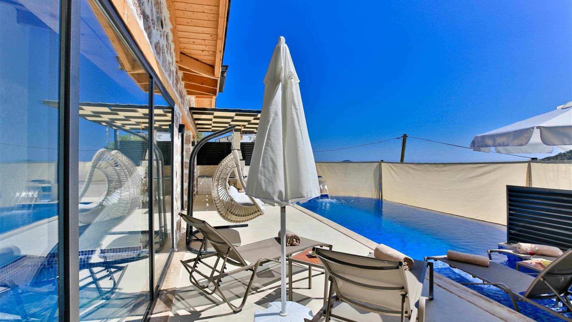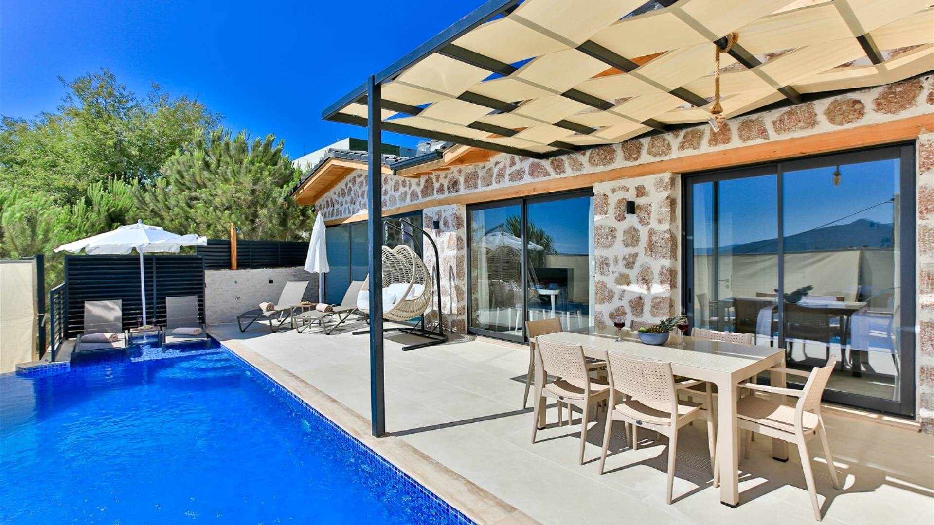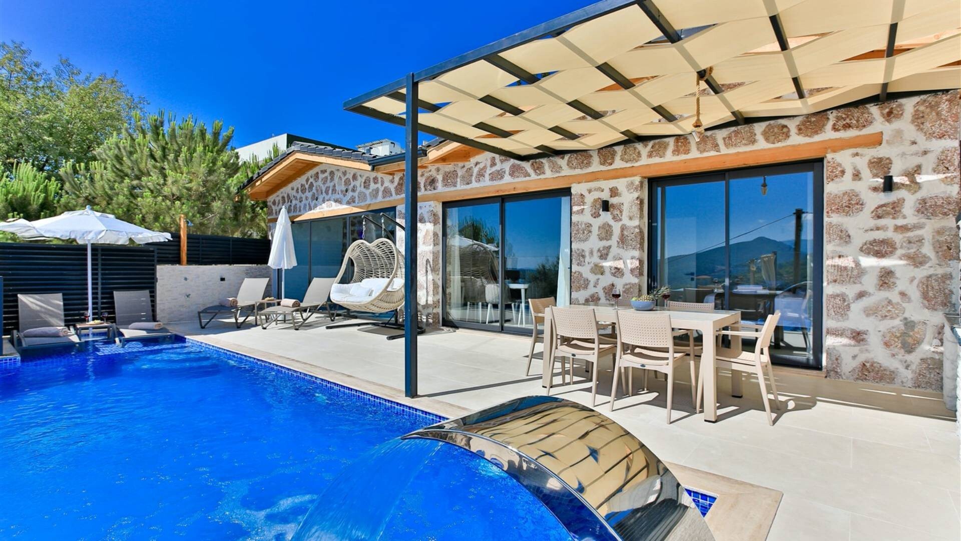 Этот стильный и замечательный объект, расположенный в городе Калкан, ждет вас, чтобы подарить вам и вашим близким незабываемые впечатления от отдыха.