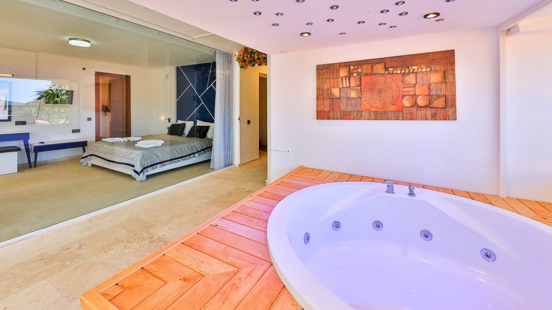 В объекте могут разместиться до 8 человек. В наличии 4 спальни и 4 ванные комнаты, имеется достаточное пространство для гостей, позволяя вам чувствовать себя как дома. Кроме того, современное и стильное оформление сделает ваш отдых комфортным.