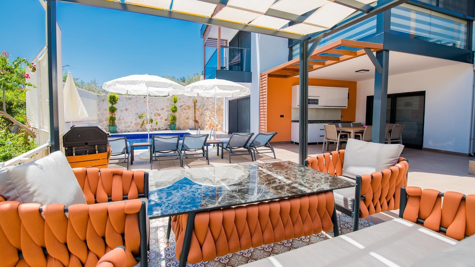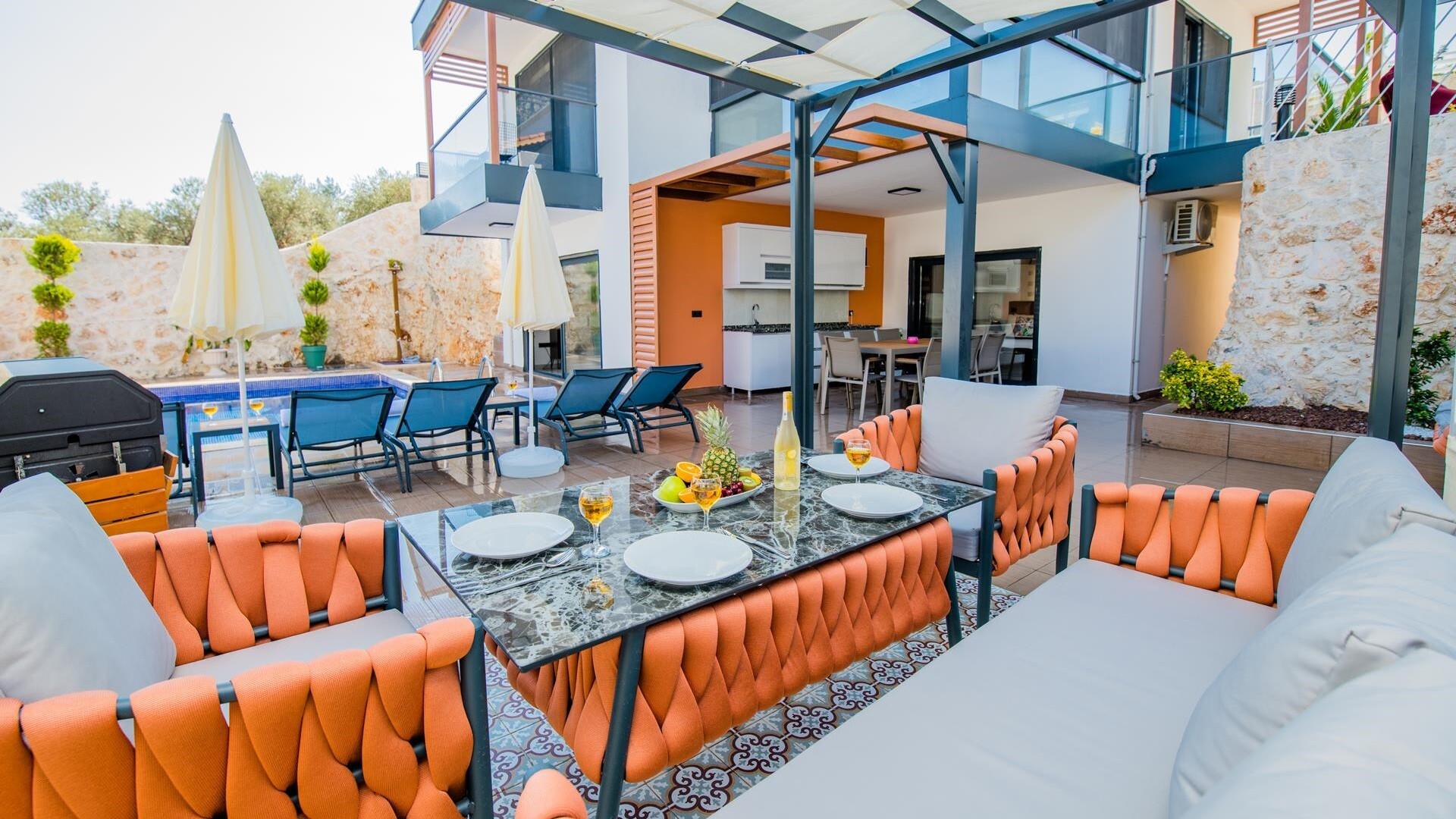 Этот стильный и замечательный объект, расположенный в городе Калкан, ждет вас, чтобы подарить вам и вашим близким незабываемые впечатления от отдыха.