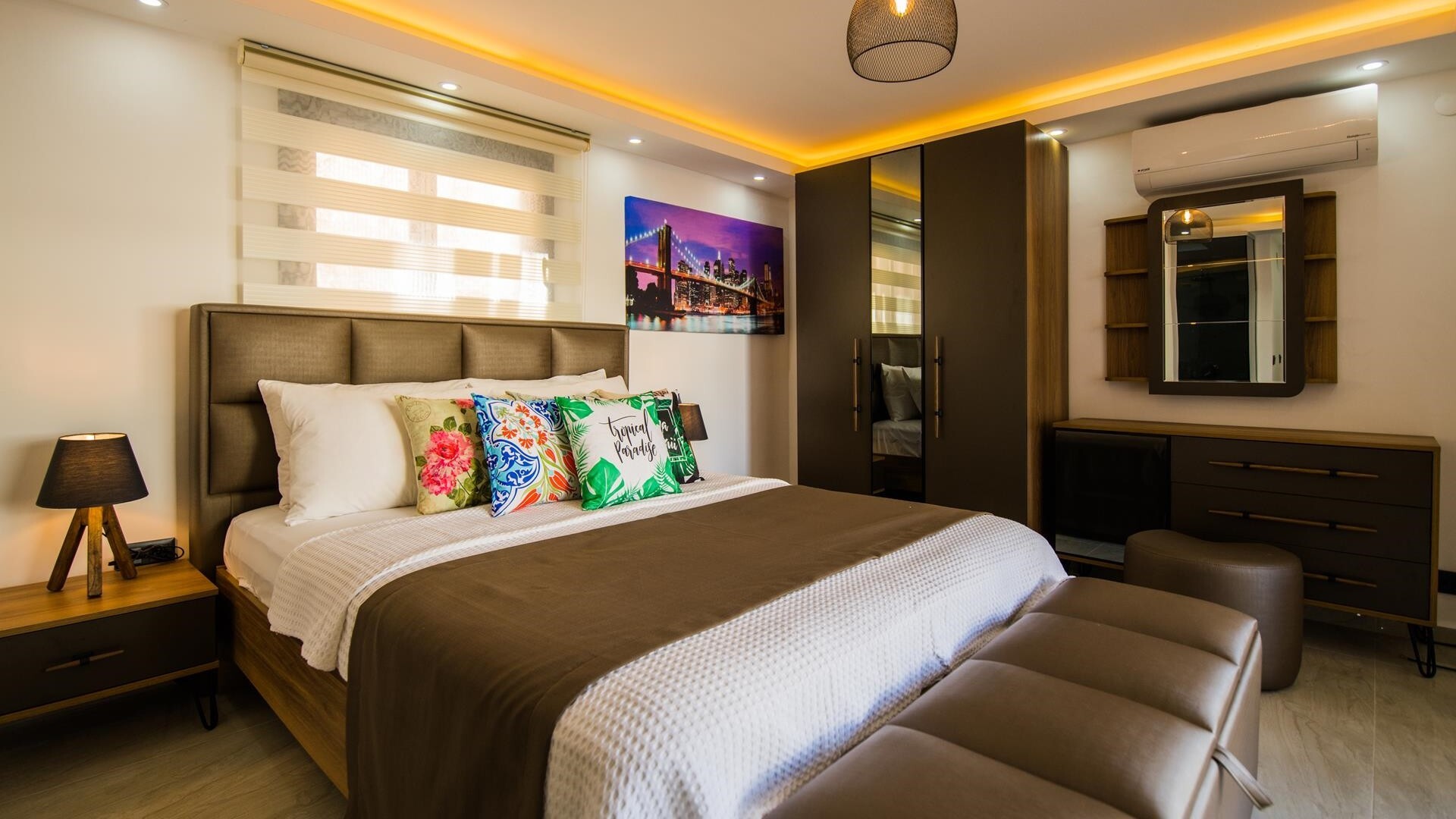 В объекте могут разместиться до 8 человек. В наличии 4 спальни и 4 ванные комнаты, имеется достаточное пространство для гостей, позволяя вам чувствовать себя как дома. Кроме того, современное и стильное оформление сделает ваш отдых комфортным.
