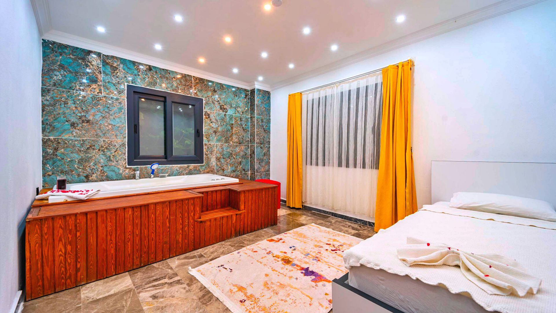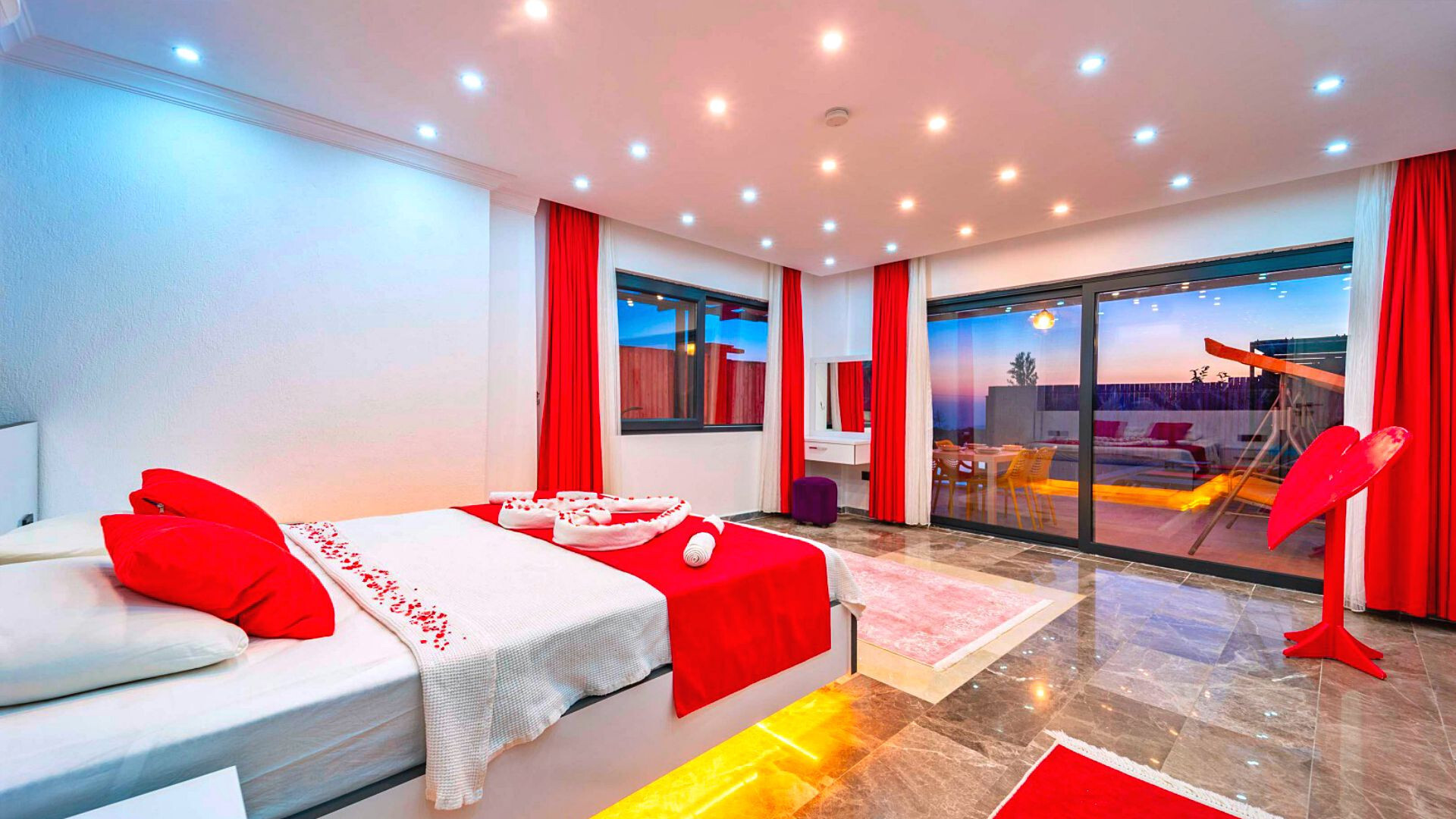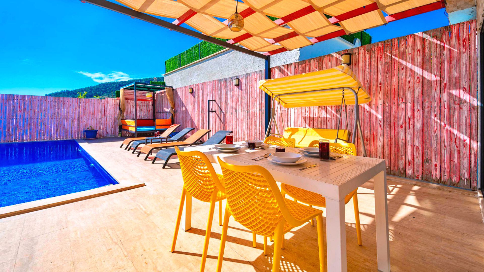 Этот стильный и замечательный объект, расположенный в городе Калкан, ждет вас, чтобы подарить вам и вашим близким незабываемые впечатления от отдыха.