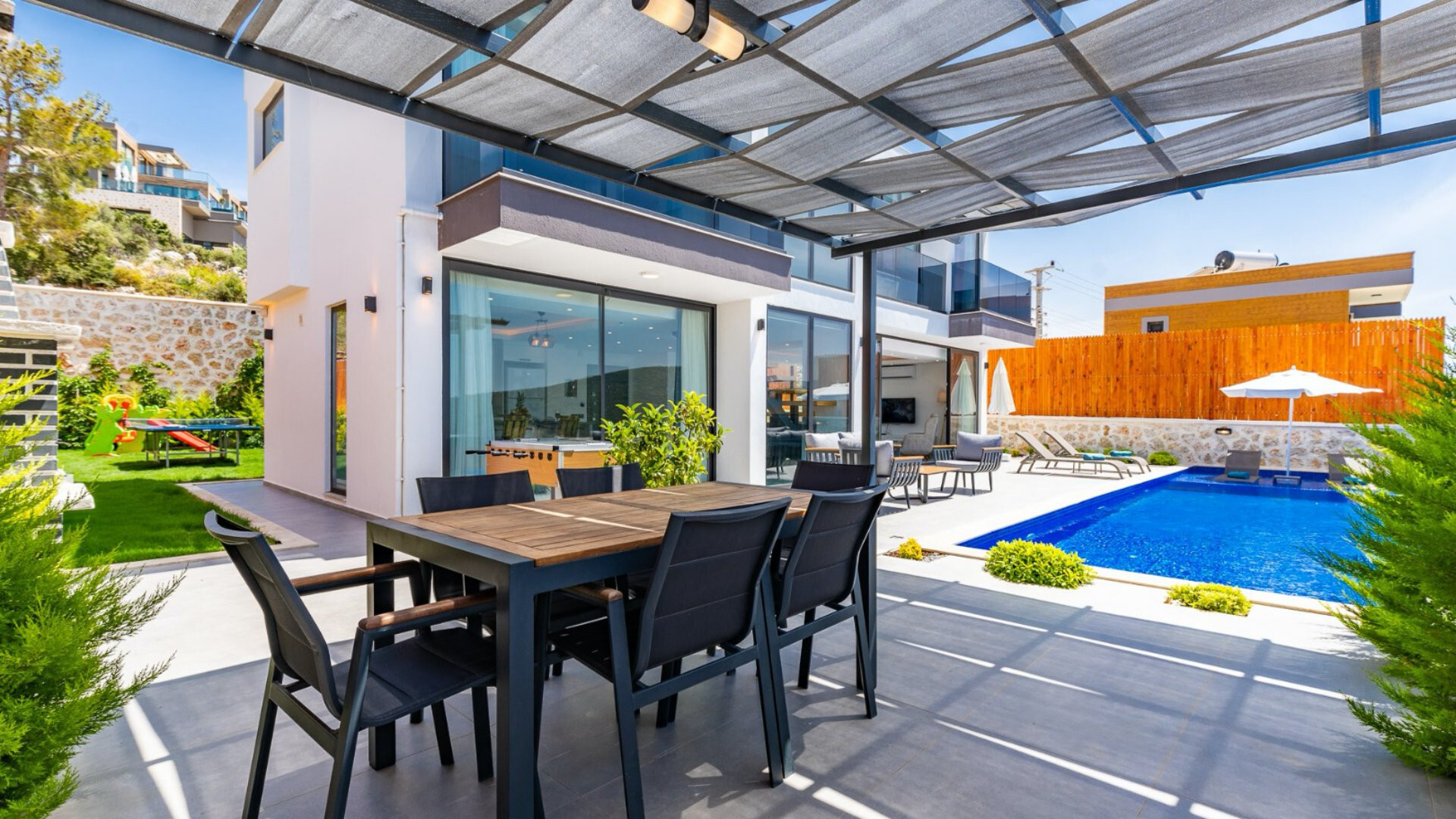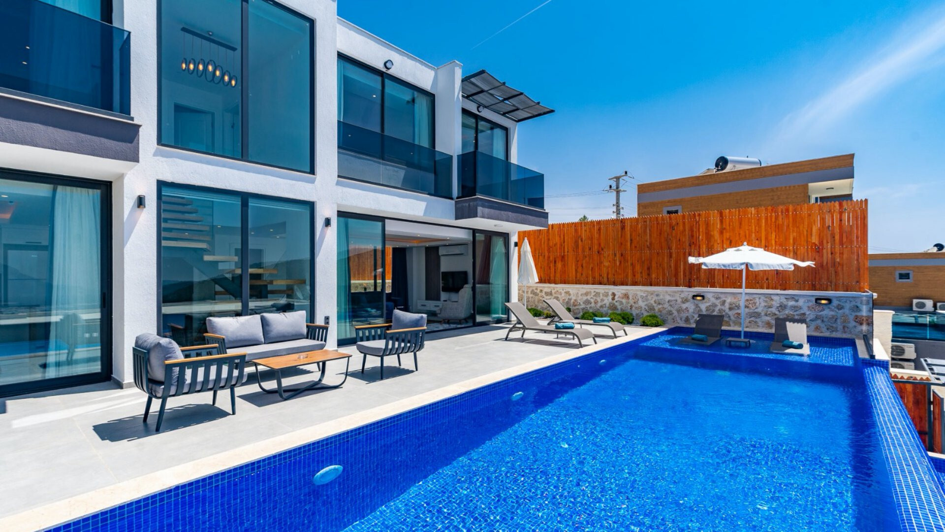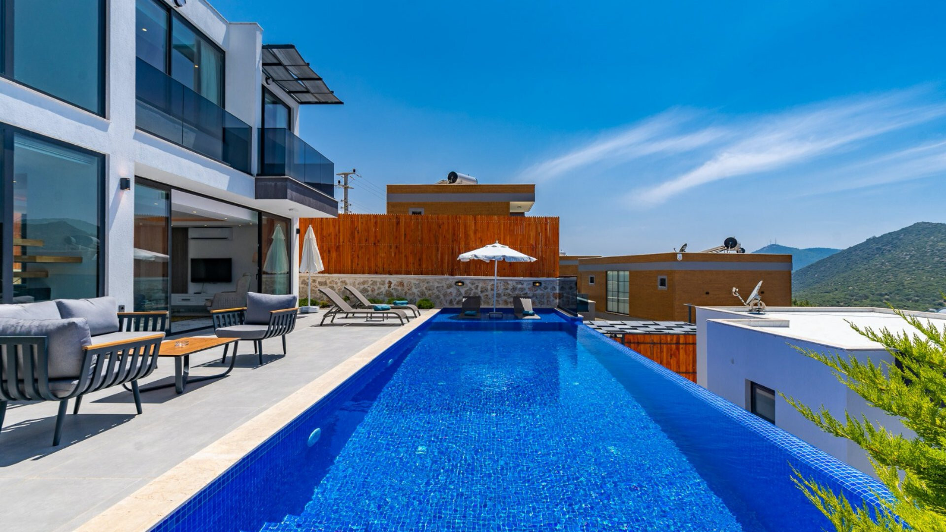 Этот стильный и замечательный объект, расположенный в городе Калкан, ждет вас, чтобы подарить вам и вашим близким незабываемые впечатления от отдыха.