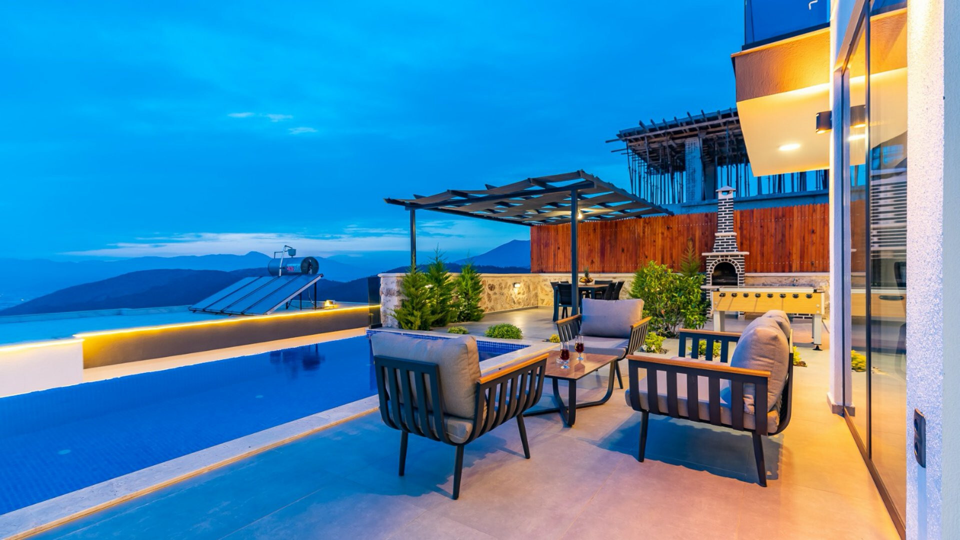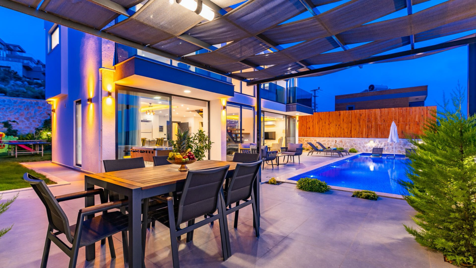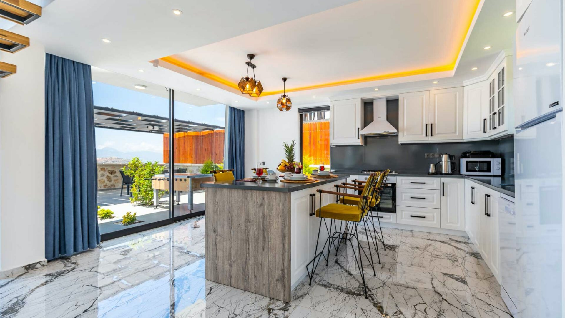 Этот стильный и замечательный объект, расположенный в городе Калкан, ждет вас, чтобы подарить вам и вашим близким незабываемые впечатления от отдыха.