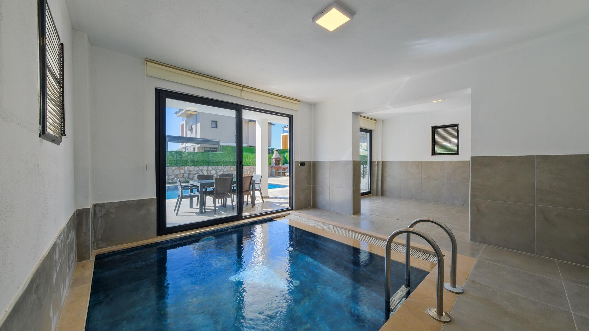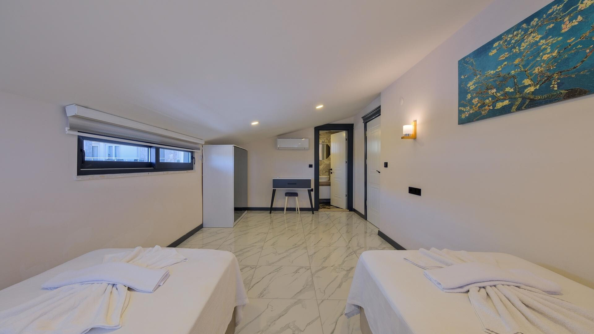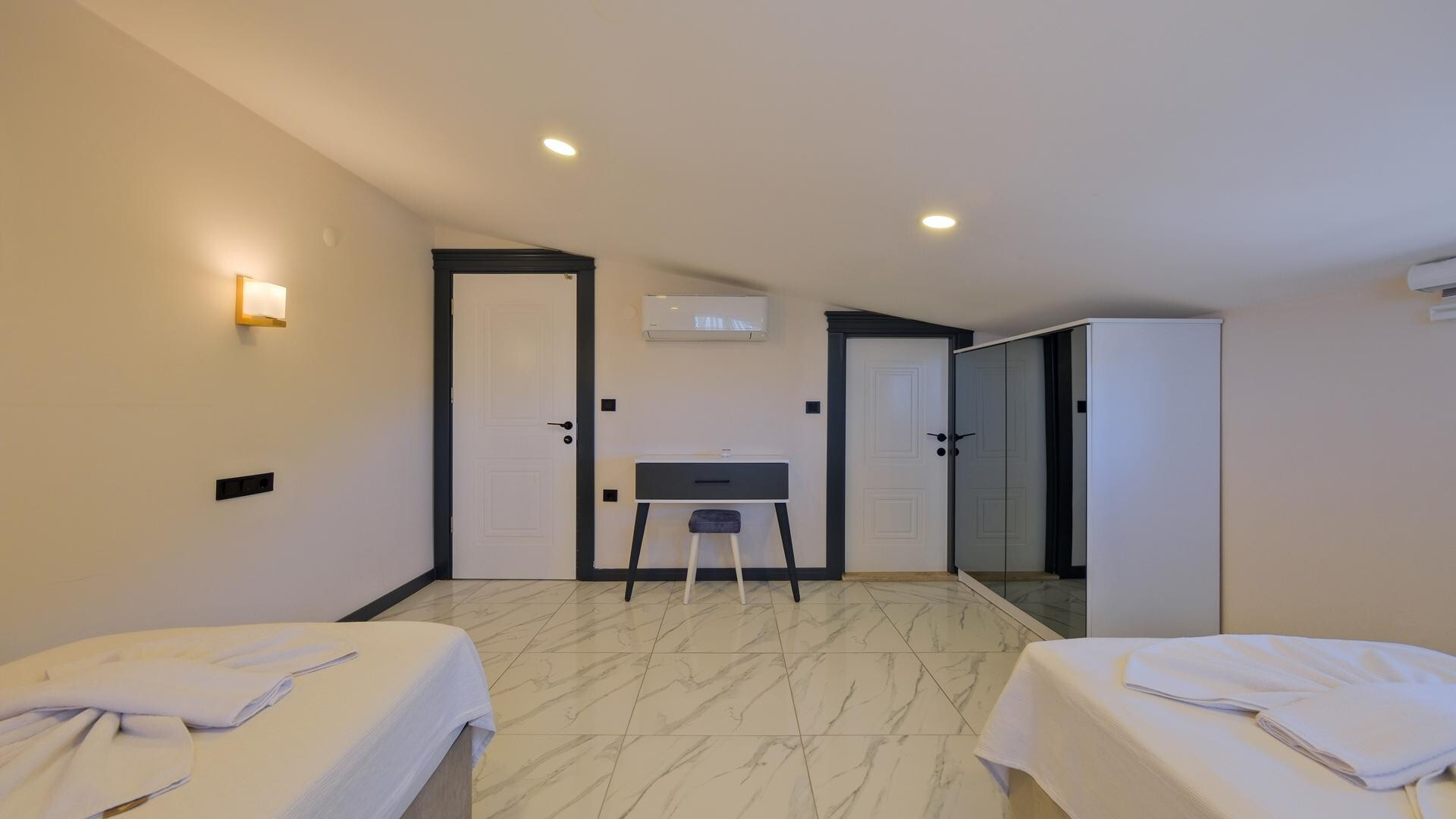 В объекте могут разместиться до 8 человек. В наличии 4 спальни и 4 ванные комнаты, имеется достаточное пространство для гостей, позволяя вам чувствовать себя как дома. Кроме того, современное и стильное оформление сделает ваш отдых комфортным.