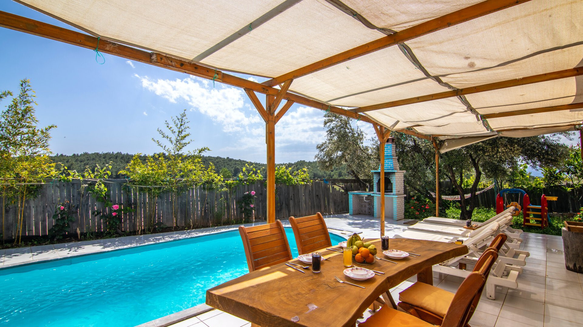 Этот стильный и замечательный объект, расположенный в городе Калкан, ждет вас, чтобы подарить вам и вашим близким незабываемые впечатления от отдыха.