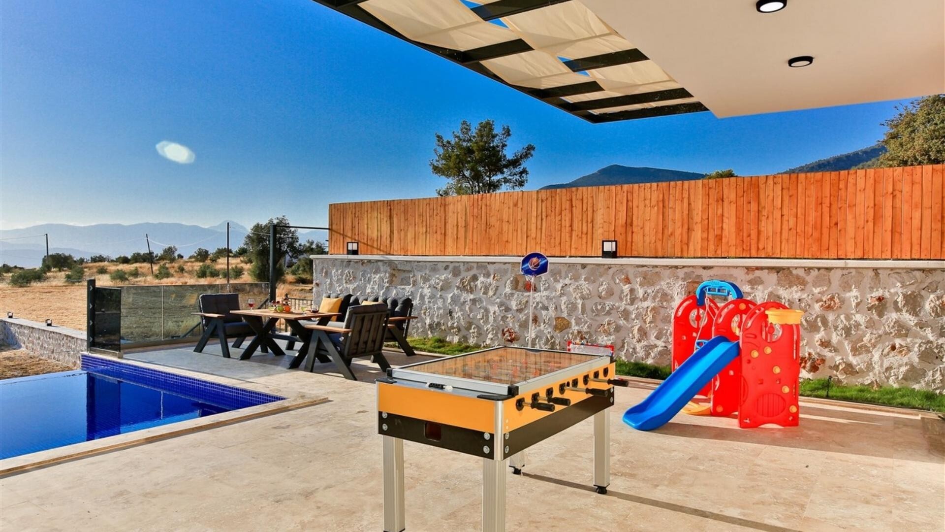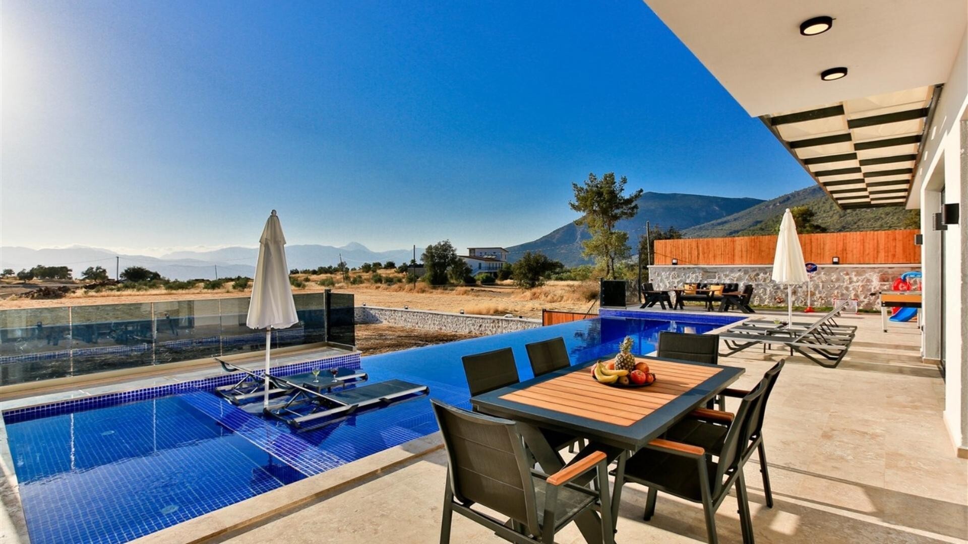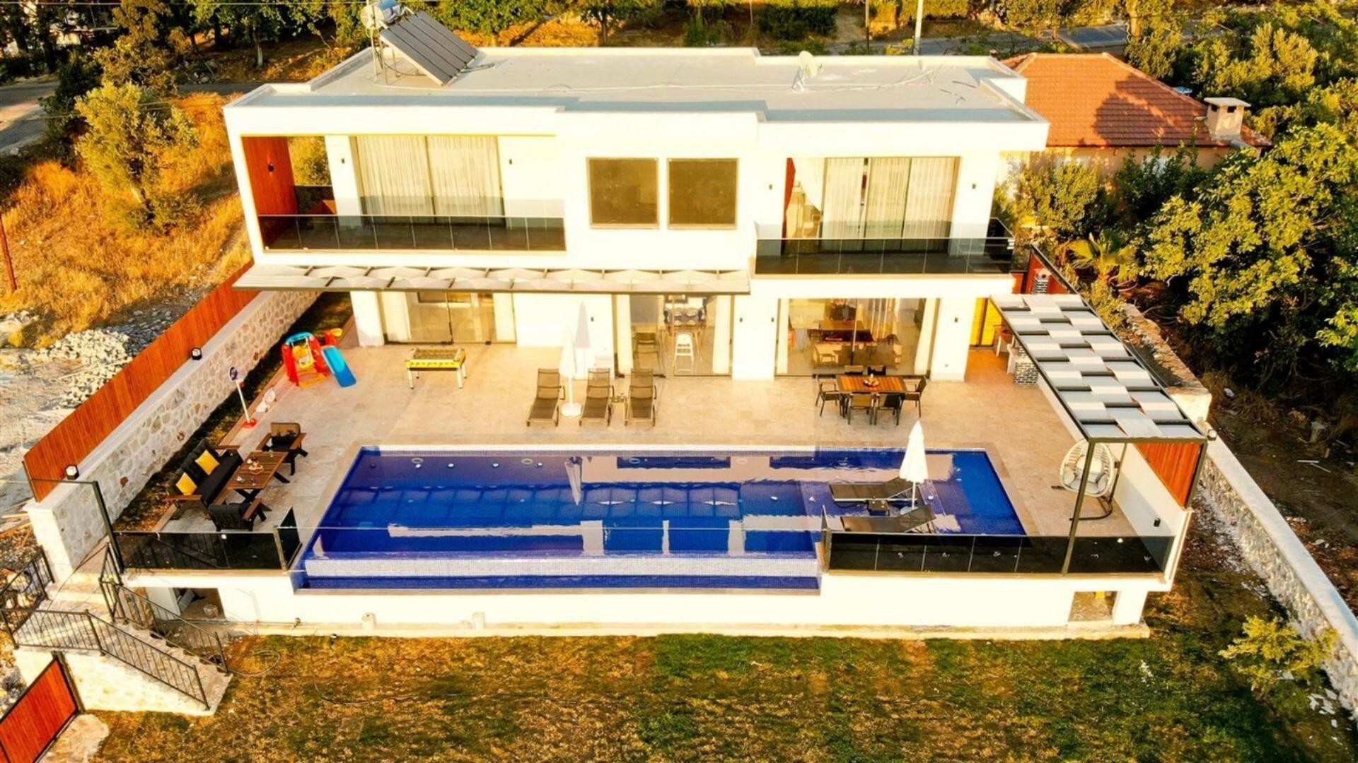 Этот стильный и замечательный объект, расположенный в городе Калкан, ждет вас, чтобы подарить вам и вашим близким незабываемые впечатления от отдыха.