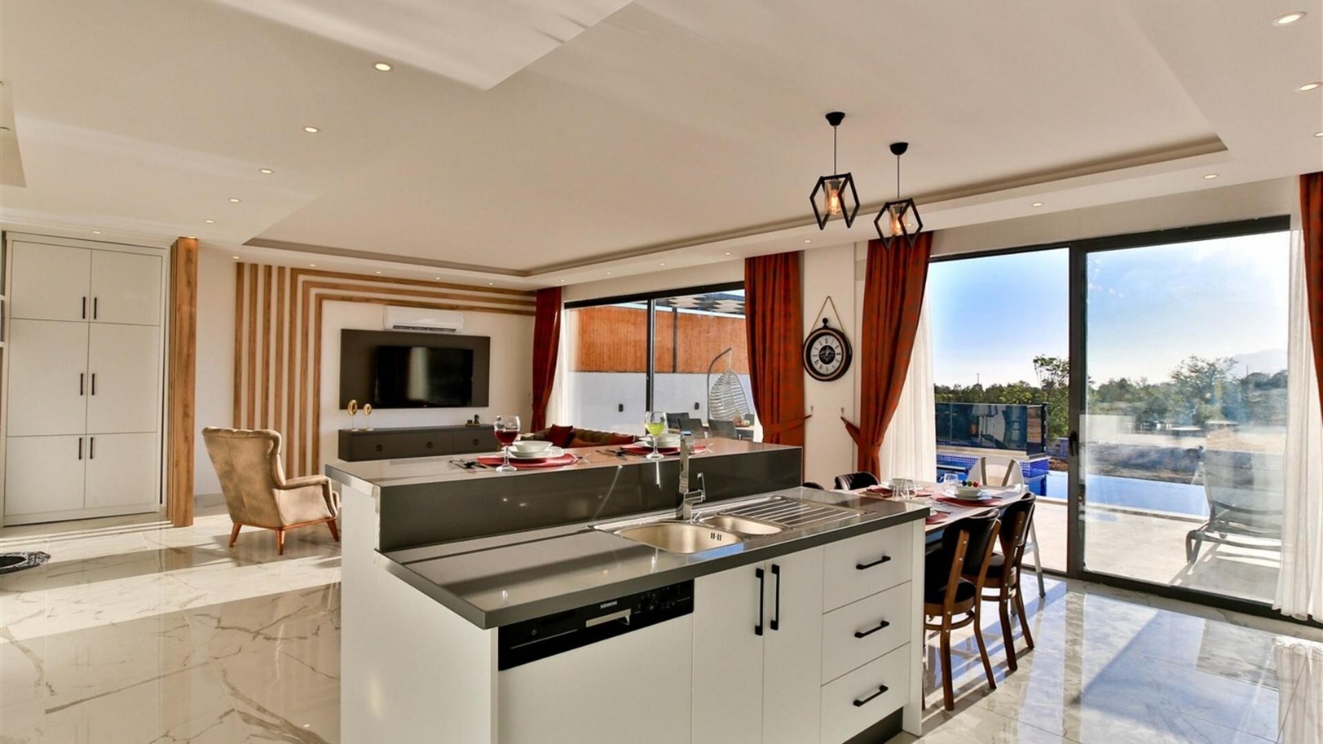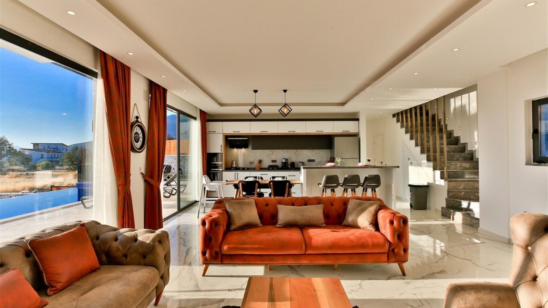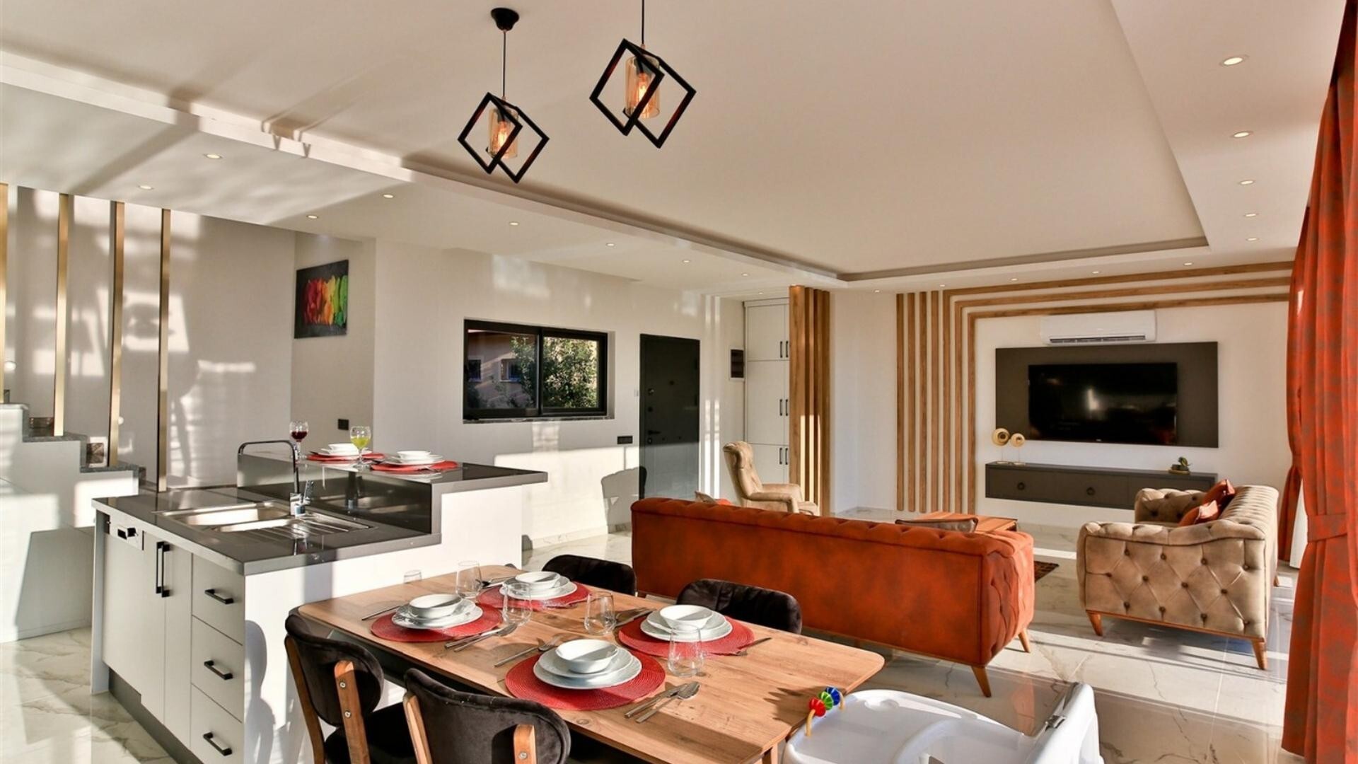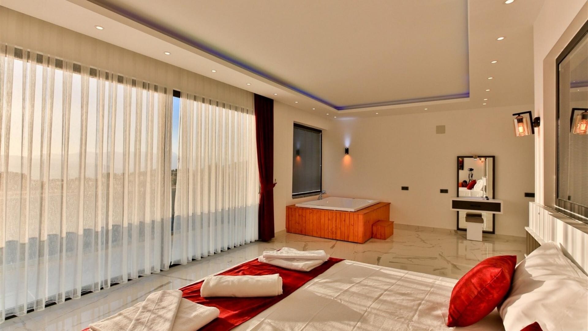 Этот стильный и замечательный объект, расположенный в городе Калкан, ждет вас, чтобы подарить вам и вашим близким незабываемые впечатления от отдыха.