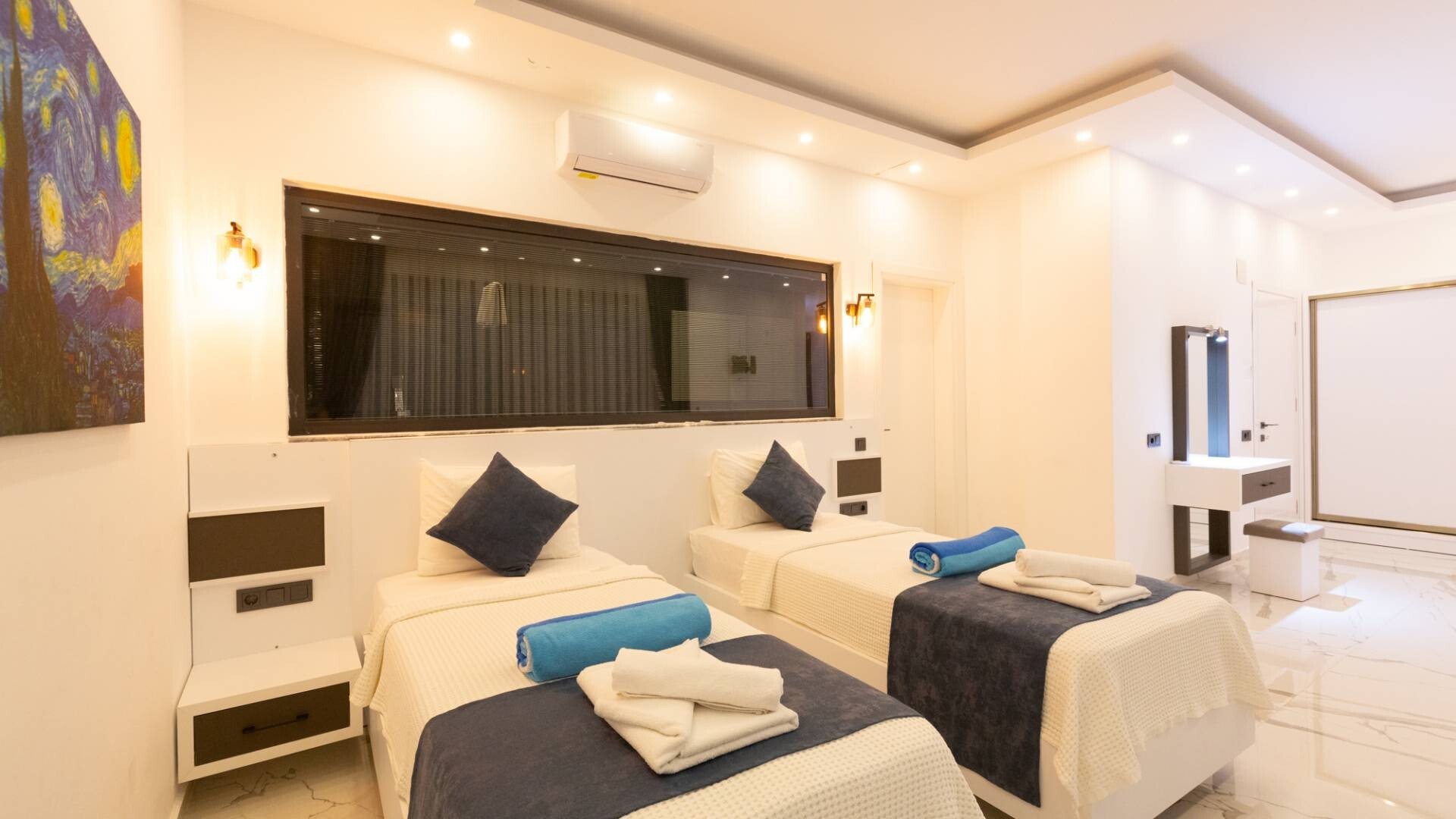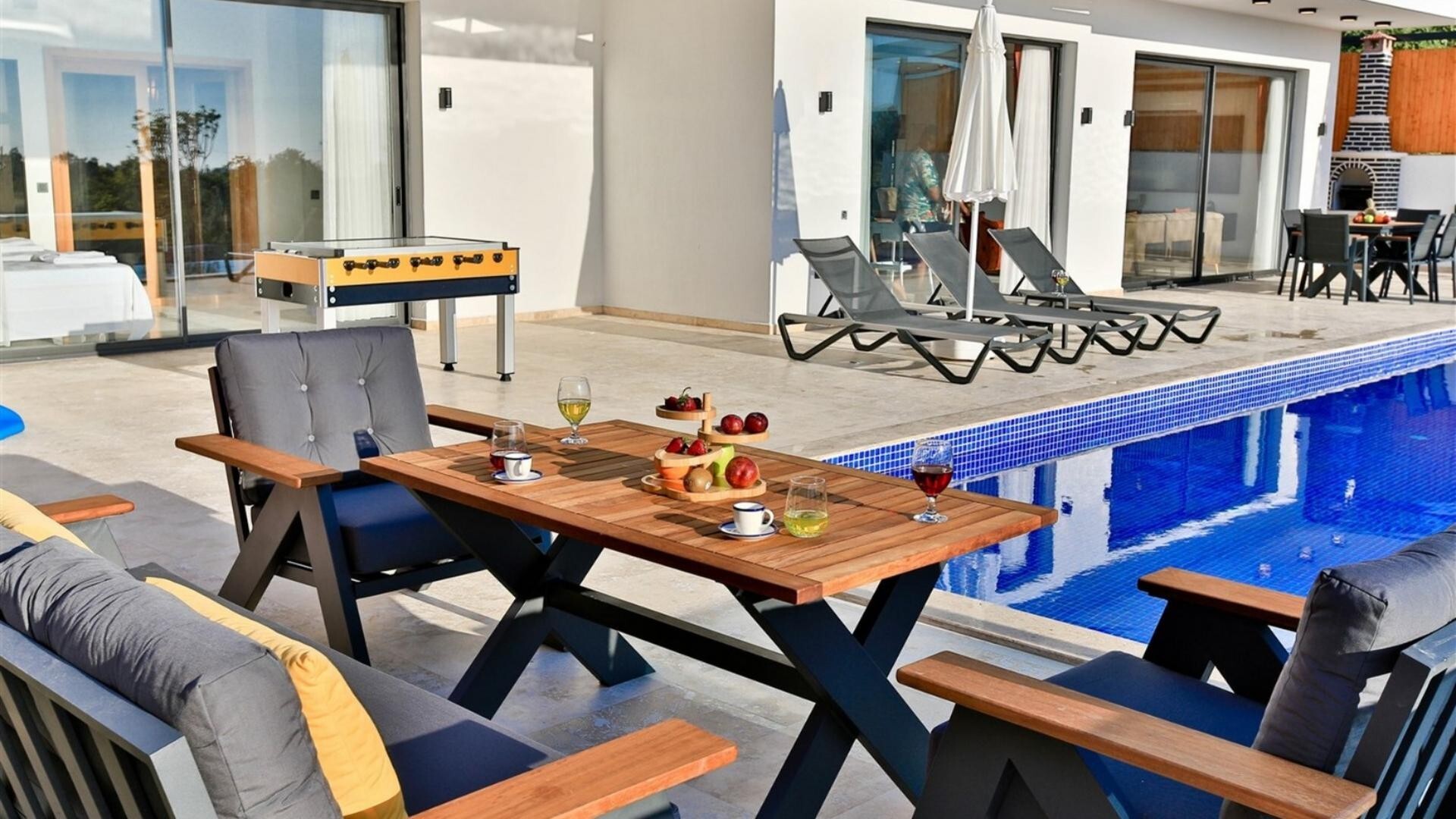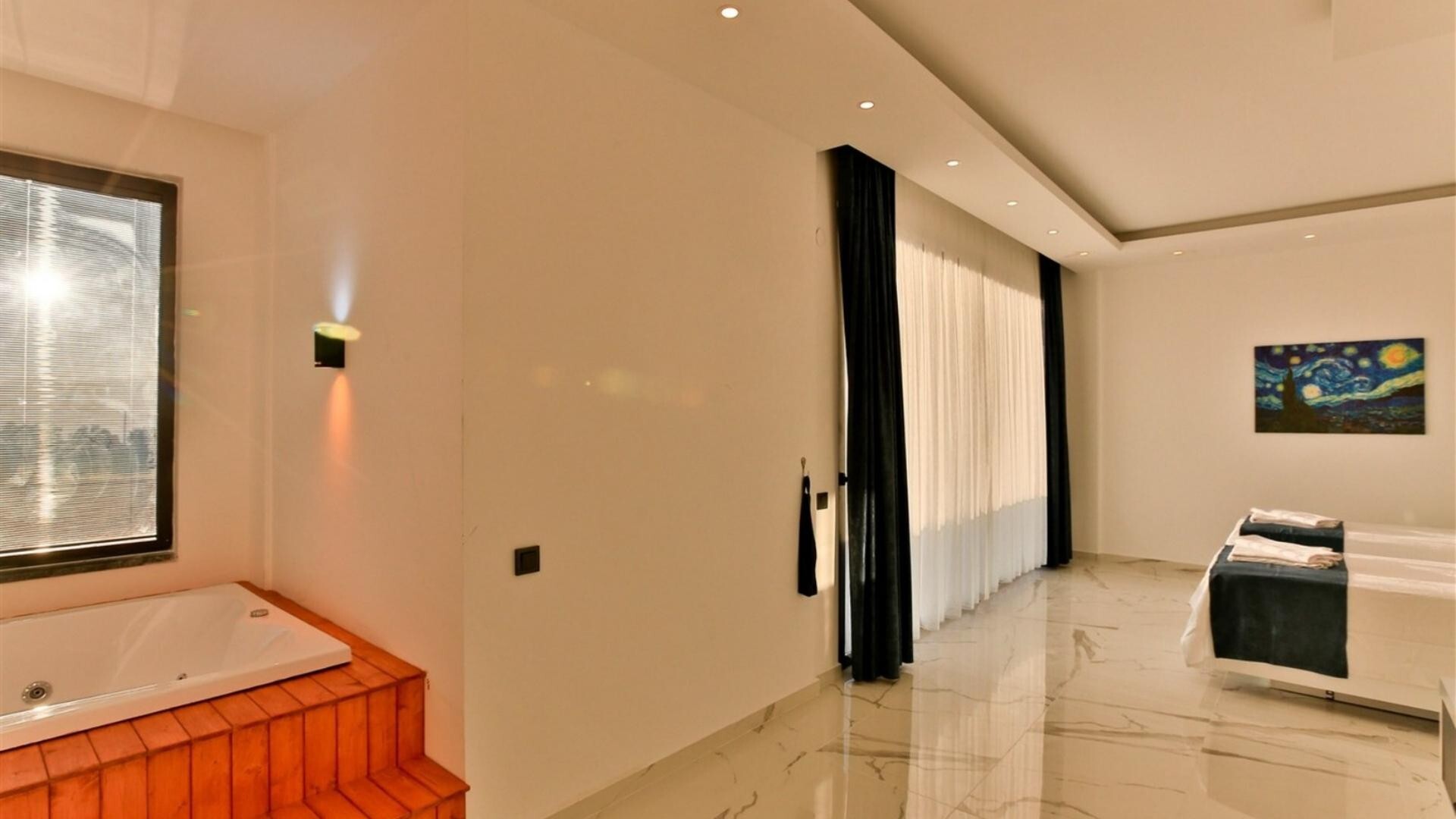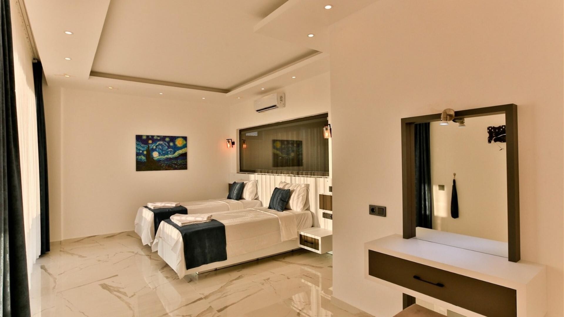В объекте могут разместиться до 6 человек. В наличии 3 спальни и 3 ванные комнаты, имеется достаточное пространство для гостей, позволяя вам чувствовать себя как дома. Кроме того, современное и стильное оформление сделает ваш отдых комфортным.